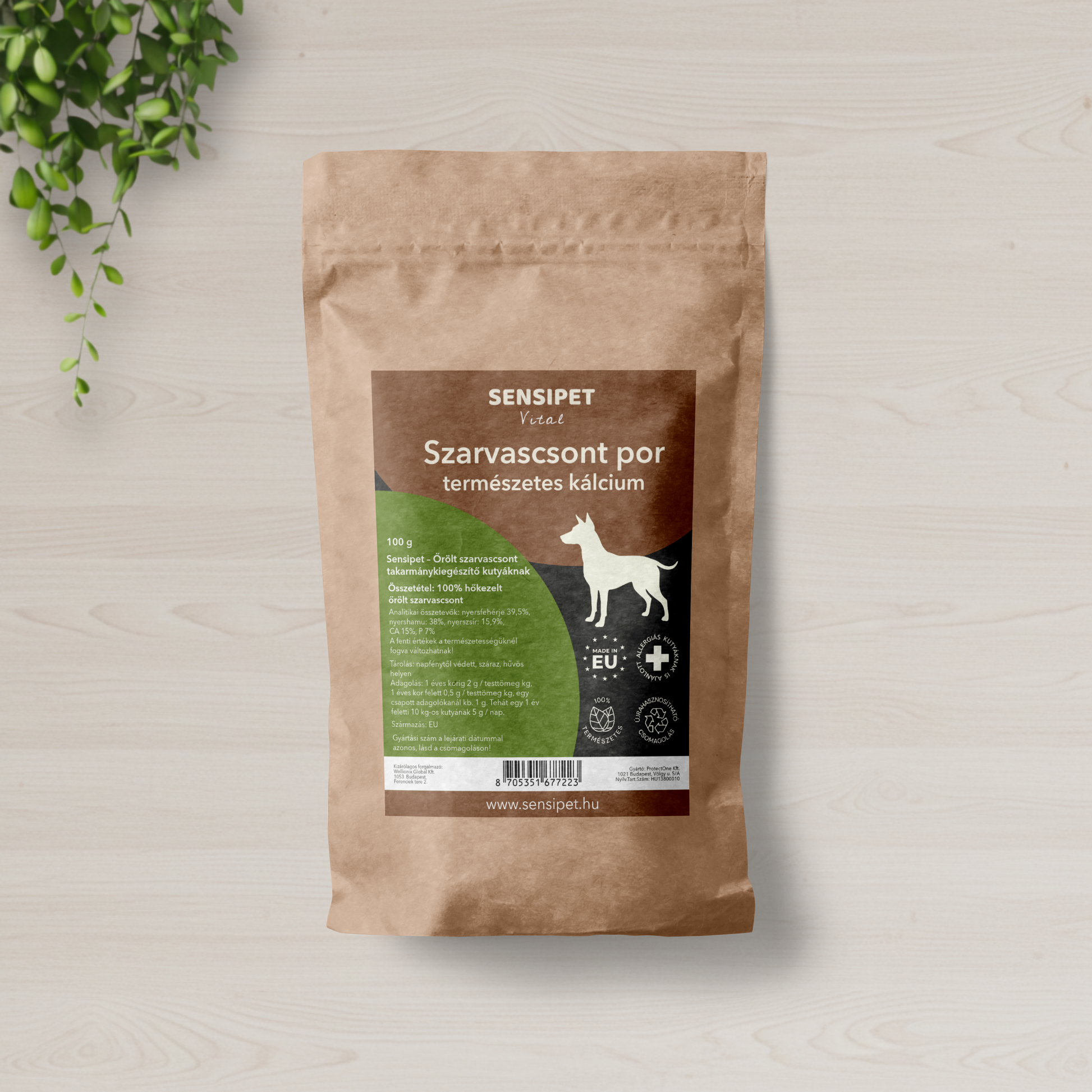 A megfelelő kálciumbevitel kutyád számára minden életszakaszban kiemelten fontos. A jól hasznosuló kálcium számos anyagcsere-folyamatban játszik szerepet, ezért elengedhetetlen az általános egészség megőrzéséhez. Vemhes és szoptató szukák esetében a megfelelő kálciumszint biztosítása különösen fontos, míg a kölyökkutyák fejlődéséhez, növekedéséhez és egészséges fogazatához szintén nélkülözhetetlen. Az őrölt szarvascsont emberi fogyasztásra szánt, húsos csontrészekből készül.